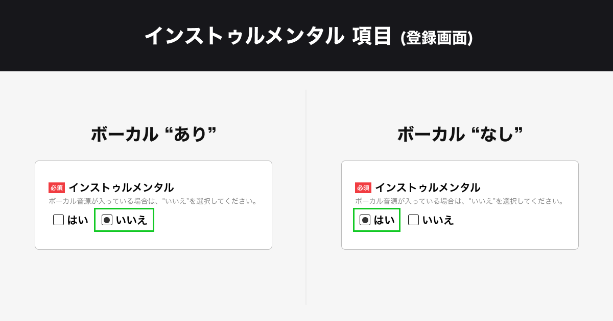 ※インストゥルメンタル曲の場合は、「インストゥルメンタル」を選択しましょう。